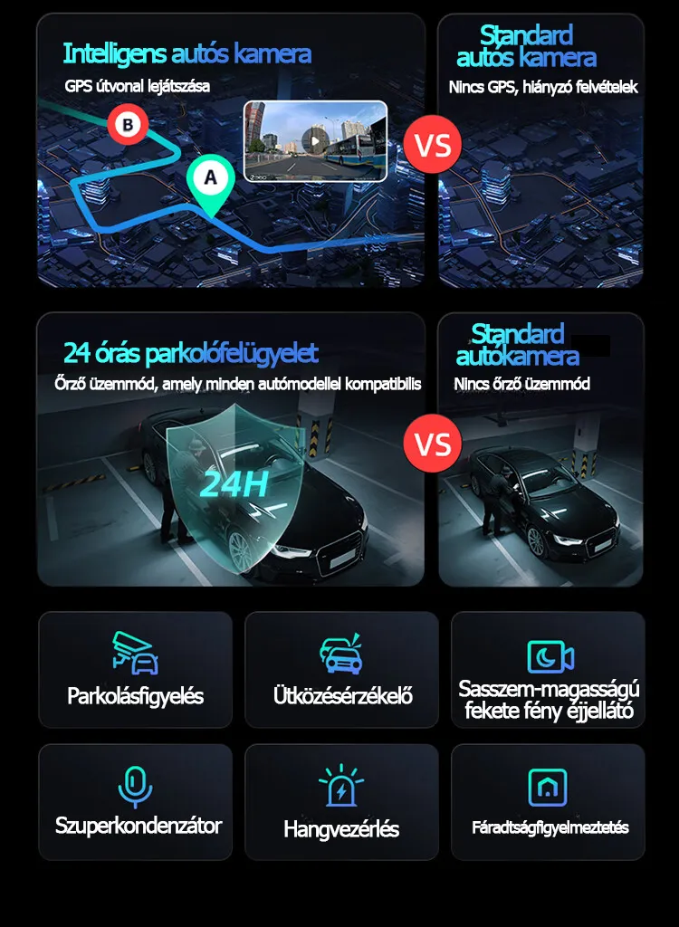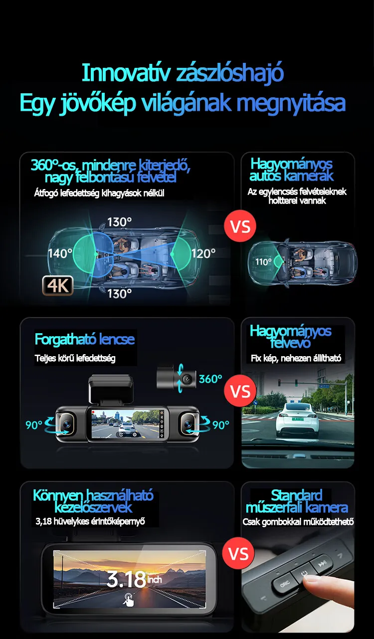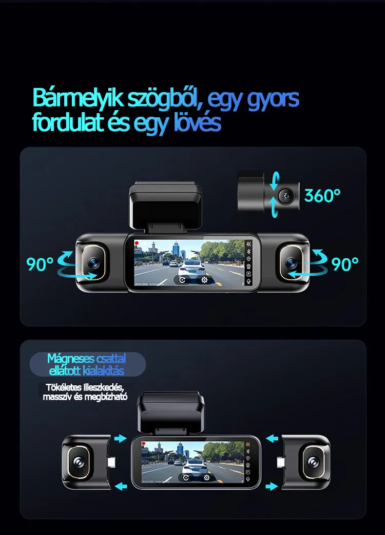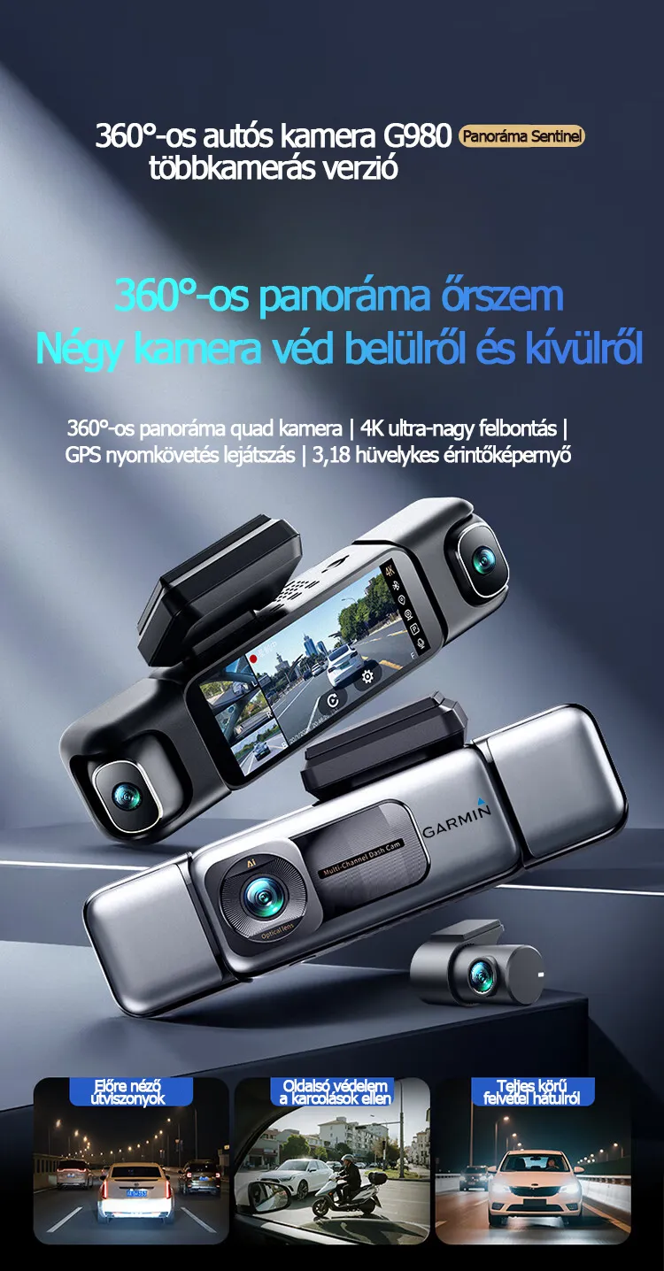 AI Vezérelt 4K Ultra HD Autós Kamera 360° Panoráma Nézettel, Éjjellátással és GPS Nyomkövetéssel