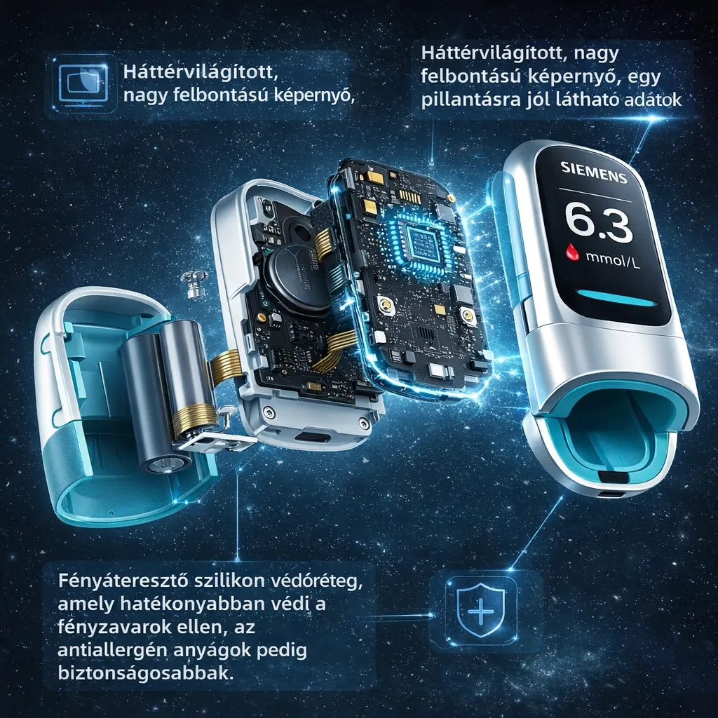 A foton chip technológia és az optikai abszorpciós spektrum mérési folyamata révén a készülék rendkívül precíz vércukorszint-értékeket ad.